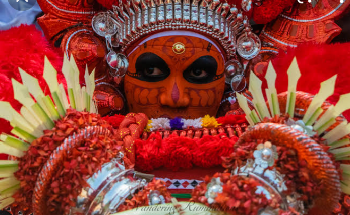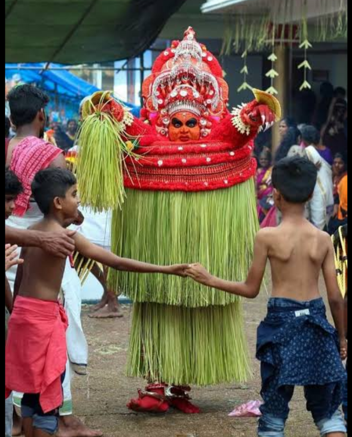 This Theyyam tells the story of the Narasimha Avatar of Vishnu. The body movements of the performer are very interesting and keep the devotees enthralled. In Payyannur and surrounding areas, Vishnumoorthy Theyyam Ottakkolam (meaning only one Theyyam) is very famous. The Ottakolam Theyyam performance requires the performer to enter a pyre and return. This is called Agnipravesam. This act is repeated several times.